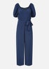 Mela Navy Square Neck Puff Sleeve Culotte Jumpsuit