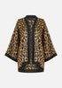Mela Plus Size Animal Print Satin Kimono In Brown