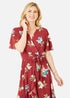 Mela Red Floral Dip Hem Wrap Midi Dress