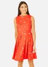 Learn moreSimple and stylish skater dresses are the must have for summer walks and seaside adventures. The all over red Swallow print from Mela is the perfect way to add a cute print into your daytime mix. The high neckline, fitted waistline, swishy skirt and slightly dipped back will be perfect to pair with a denim jacket and trainers.