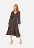Learn moreThe Mela Navy Satin Dash Print Midi Dress is the perfect addition to your wardrobe this season. In an easy skater shape, the long balloon sleeves and self tie waist elevate this piece. The V-neckline and silky satin fabric make this the perfect work to weekend attire.
