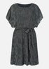 Learn moreThe Mela Black Sparkle Kimono Sleeve Skater Dress featured a knee length hem, self tie waist and round neck line. The sheer fabric subtly shimmers in tones of silver and grey. Add your favourite pair of heels and a cute clutch to complete the fit, simple and elegant