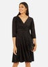 Learn moreAll over leopard print will always to a winner in our books. This velour textured black skater dress looks perfect paired with boots and a blazer. With 3/4 sleeves, a banded waistline and wrap over neck, the fabric has a slight stretch for comfort and movement.