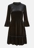 Learn moreSometimes simple can make a big impact, and this Black skater dress from Mela is no exception to that rule. In luxe feeling velvet, with a bell sleeve detail, high neck and the ruffle finishing off the hemline. This dress would be the perfect option for a Christmas party or festive invites.