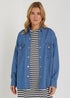 Learn moreYou can't go wrong with a denim shirt! Designed in a stunning mid wash tone, it features chic dropped shoulders, a comfy collar, twin chest pockets and silver button fastenings to finish. Simply pair with your favourite jeans and a cute tee. Model Height: 5ft 9.