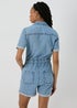 Learn moreOur Mid Wash Denim Playsuit is a must-have for your wardrobe, effortlessly blending style and comfort. Crafted from premium-quality denim, this playsuit offers a figure-flattering fit that accentuates your curves. Featuring four front pockets, structured collar, elasticated waistband and tie detailing. The mid-wash denim exudes a classic look, making it suitable for various occasions. This playsuit can be dressed up and down. Create a relaxed boho vibe by pairing the playsuit with gladiator sandals, a wide-brimmed hat, and delicate jewellery.