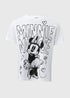 Add a touch of whimsical charm to your everyday style with our enchanting Minnie Mouse White Printed T-Shirt. This delightful top is a must-have for any Disney enthusiast, featuring a iconic black playful all-over minnie print and slogan. Crafted from soft and comfortable cotton, this tee promises a relaxed fit, making it perfect for casual outings or simply lounging at home. Pair it with your favourite denim shorts and sneakers for a casual day out or create a relaxed weekend ensemble by tucking it into high-waisted trousers or jeans.