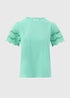 Enhance your everyday wardrobe with our Mint Cutwork Sleeve T-Shirt, a perfect blend of casual comfort and stylish detail. This versatile piece is designed to add a pop of colour to your casual outfits, making it a must-have for any fashion-conscious individual. Made with a soft, breathable, and lightweight fabric that ensures maximum comfort throughout the day. Featuring a classic relaxed t-shirt design, with intricate cutwork detailing on the sleeves, adding a touch of sophistication and uniqueness. Pair it with your favourite denim shorts and sandals for a casual summer look or dress it up with a skirt and heels for a night out.