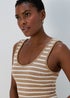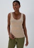 Learn moreA perfect blend of comfort and style for any season, this vest boasts a beautiful mocha and white stripe pattern, reminiscent of the natural elegance of fungi stripes. Crafted with a knit look, it offers both the warmth and texture of knitwear while being lightweight and versatile. The wide straps and scoop neckline provide a flattering fit, ensuring you look as good as you feel. Whether paired with jeans for a casual look or dressed up with accessories, this vest promises to be a staple in your wardrobe.