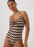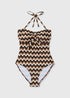 Learn moreIf you are looking for a stylish and versatile swimsuit for the summer, look no further than our Mocha Tie Front Chevron Swimsuit. This one-piece swimsuit features a chic and contemporary chevron print in mocha brown that will make you stand out from the crowd. The flattering tie front detail allows you to adjust the fit to your preference and accentuate your curves. Whether you want to lounge by the pool, hit the beach, or explore the town, this swimsuit can be easily paired with different accessories and outfits to suit any occasion. You can wear it with a sheer sarong and oversized sunhat for a beachy-chic look, or add a statement necklace and bold earrings for a touch of glamour. You can also throw on a pair of high-waisted shorts and sandals for a casual day out, or layer it with a lightweight kimono and sandals for a relaxed evening ensemble. With its sophisticated design and versatility, the swimsuit is your perfect companion for any summer adventure. Order yours today and make a splash in style!