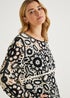 Providing soft comfort all day long, this gorgeous top comes with a monochrome colour palette to ensure it never falls out of fashion. Detailed with intricate florals in various shapes and sizes, the long sleeves serve to keep your arms covered when the weather turns chilly. It'll look lovely with jeans and boots.