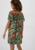 Summer-ready and oh-so-flattering, this Multicolour Floral Bardot Mini Dress from our women's holiday shop will quickly become your go-to for sun-soaked days and balmy nights. This knee-length dress is made from lightweight, machine-washable 100% viscose fabric, ensuring all-day comfort. Its elasticated bardot neckline and blouson sleeves flatter all figures, while the vibrant tropical floral design will turn heads wherever you go. Pair it with sandals and a sunhat for a chic beachside look, or dress it up with heels and statement jewellery for a special occasion.