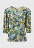 Multicolour Floral V Neck Empire Seam Top