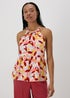 Multicolour Leaf Print Plaited Neck Cami Top
