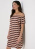 Step into the spotlight with the vibrant Multicolour Mono Chevron Viscose Bardot Dress, a perfect blend of comfort and style. This eye-catching piece features a classic chevron pattern in a bold monochrome palette, ensuring you make a statement wherever you go. Crafted from soft, breathable viscose, this dress promises to keep you cool while offering an effortlessly chic Bardot neckline that adds an elegant touch. The short sleeves and relaxed fit cater to both casual outings and sophisticated events, making it a versatile addition to your wardrobe.