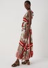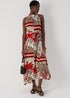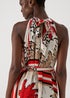 This lightweight and vibrant Multicolour Scarf Print Halterneck Midi Dress will elevate your summer wardrobe. Designed with a bold beige and red scarf print, this dress will add a touch of contemporary style to any daytime outfit. Its midi length is flattering and easy to wear, while the halter-neck and tie neck design offers a touch of sophistication. Whether you're heading to a garden party or a day of shopping, this dress will keep you looking and feeling fabulous. Pair with a denim jacket and trainers for a relaxed and casual daytime look or add a statement necklace and heels for a more elevated evening ensemble.