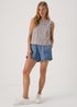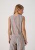 Introducing our Multicolour Stripe Co Ord Vest This vibrant sleeveless vest features a blend of vertical stripes in shades of blue, orange, and white. Perfect for a casual-chic look, it pairs effortlessly with jeans or shorts. Stand out in style with this eye-catching piece!