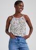 Fancy taking a walk on the wild side? Look no further than this light and airy vest top, featuring a linen-look design. With a multicoloured animal print all over and slim straps to let your shoulders breathe on hot days, it's the ultimate partnering piece for your favourite pairs of shorts and sandals.