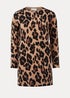 Learn moreCosy and casual, this striking day dress puts comfort at the forefront. Crafted with black and brown tones, the animal print dress is cut to a flattering length to streamline your silhouette, alongside ribbed detailing for a snug feel. Additional style notes include a mid length, a crew neckline and a super soft tunic design. Model Height: 5ft 9.