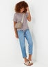 This glitter T-shirt is a must for seeing you through the year. Nice and soft, it's tailored with multicoloured stripe print for a flattering colour palette. Cut with dropped short sleeves for easy breezy comfort, it's the perfect partnering piece for jeans, trousers and shorts alike. Model Height: 5ft 9.