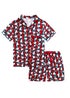 My Christmas Pyjamas Red Mistletoe & Wine Two-Piece Short Matching Pyjama Set