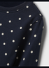 - Navy and white polka dot