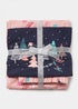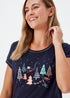 Snuggle up after a day of exploring with these cosy pyjamas. Styled with a navy base, the tee features a comfy neckline, breezy short sleeves and a chic rounded hem for extra style points. Crafted with an elasticated waist and cuffed bottoms for added snugness, the bundle is finished with a trendy apres ski print all-over.