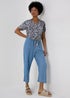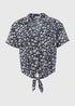 Step into casual elegance with the Navy & Blue Ditsy Tie Front Viscose Top. This charming top features a delicate floral ditsy print in shades of blue on a navy background, creating a fresh and feminine look. The short sleeves and V-neckline lead to a playful tie-front detail at the waist. Crafted from lightweight viscose fabric, this versatile top ensures both comfort and style for relaxed days or casual outings. Pair it effortlessly with jeans or skirts to complete your chic ensemble!