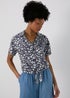 Learn moreStep into casual elegance with the Navy & Blue Ditsy Tie Front Viscose Top. This charming top features a delicate floral ditsy print in shades of blue on a navy background, creating a fresh and feminine look. The short sleeves and V-neckline lead to a playful tie-front detail at the waist. Crafted from lightweight viscose fabric, this versatile top ensures both comfort and style for relaxed days or casual outings. Pair it effortlessly with jeans or skirts to complete your chic ensemble!