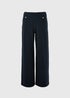 Elevate your outfit with these navy boucle wide leg trousers, designed to bring texture and sophistication to your wardrobe. Crafted from plush boucle fabric, they feature an elegant wide leg silhouette that drapes beautifully and adds effortless movement. Gold button detailing at the waist adds a polished, statement finish, while the tailored fit ensures they remain comfortable and flattering. Perfect for creating a coordinated look or styling individually for versatile day-to-night outfits.