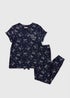 Learn moreWrap yourself in comfort and charm with this delightful navy pyjama set, featuring a playful all-over bow and heart print and 'Hello Lovely' slogan to the chest. Made from soft 100% cotton this set combines cosiness with a touch of fun. The top has a frills to the short sleeves and a drawstring tie bottom. Whether you're lounging at home or winding down for the night, the sweet print adds a pop of personality to your bedtime routine. Perfect for gifting or treating yourself to a little extra comfort!