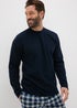 A Navy Check Fleece Pyjama Set for men typically includes a cozy top and bottom designed for comfort and warmth. This set features a long sleeve navy top, with matching check bottoms. Made from soft fleece fabric, ensuring warmth and a plush feel against the skin.