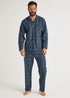 Learn moreThrow on this pyjama set when things turn chilly in the autumn-winter months. Cosy and toasty by design, it's made from 100% woven cotton that's styled with a navy base and a check print that'll never go out of fashion. Practical button fastenings, a smart collar and a chest pocket complete the shirt, while an elasticated waistband and two side pockets finish the matching bottoms.