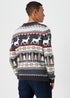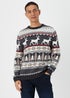 Learn moreIs there anything to love more at Christmas than wonderful fair isle patterning? Consisting of reindeers, Christmas trees, holly detailing and so much more, this snuggly jumper comes with a navy base to make the design features truly stand out. Cut with a simple yet timeless crewneck, too, the ribbed texture to the cuffs and hem add that extra bit of stretch. You'll love dressing it down with jeans or maybe up with trousers. Model Height: 6ft 1.