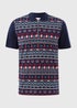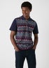 Navy Christmas Print 1/4 Zip Polo Shirt