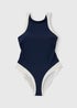 Make a sleek statement at the pool or beach with this Navy Colour Block Swimsuit with White Detail. Crafted from smooth, stretch swim fabric, it offers a flattering, supportive fit that moves with you. The classic navy base is enhanced with crisp white detailing for a modern, stylish contrast that stands out effortlessly.
