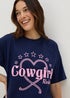 Learn moreThis Cowgirl Rodeo Nightie in Navy is a playful and cosy sleepwear option, perfect for those who love a touch of Western charm. Made from 100% soft, breathable cotton, this nightie ensures a comfortable night's sleep while the navy colour adds a classic, relaxed vibe. Featuring a fun rodeo-inspired 'Cowgirl Rodeo' slogan.