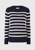 Classic and effortless, the Navy and White Striped Crew Neck Jumper is a timeless staple for every wardrobe. Featuring bold horizontal stripes in navy and white, this knit is finished with a flattering crew neckline and a relaxed fit for everyday comfort. Perfect for layering or wearing solo, it adds a nautical touch to any look.