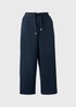 Eternally chic, these navy cropped clipper trousers are an easy choice for warm-weather and holiday dressing. Featuring a cropped length and slightly tapered silhouette, they create a flattering, relaxed shape. The tie waistband adds comfort and adjustability, while handy side pockets keep things practical and laid-back.