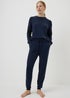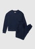 Relax in style with this navy lounge set, crafted from soft stretch jersey for maximum comfort. The top features long cuffed sleeves, dropped shoulders and a classic crew neckline, while the matching bottoms have a tapered leg, cuffed ankles, a drawcord waist and practical side pockets for storing your essentials.