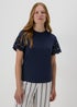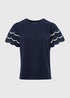 Enhance your everyday wardrobe with our Navy Cutwork Sleeve T-Shirt, a perfect blend of casual comfort and stylish detail. This versatile piece is designed to add a touch of elegance to your casual outfits, making it a must-have for any fashion-conscious individual. Made with a soft, breathable, and lightweight fabric that ensures maximum comfort throughout the day. Featuring a classic relaxed t-shirt design, with intricate cutwork detailing on the sleeves, adding a touch of sophistication and uniqueness. Add a denim jacket or cardigan for added warmth and style during cooler weather or tuck it into shorts for a relaxed summer outfit.