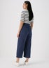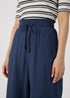 Elevate your style with our Navy Double Cloth Crop Trousers. Crafted from a luxurious blend of fabrics, these trousers offer both comfort and elegance. The rich navy hue is versatile, making it a staple for any wardrobe. With a relaxed fit, they drape gracefully, accentuating your form while allowing freedom of movement. The cropped length is contemporary and ideal for showcasing your favourite footwear. Featuring a drawstring waist for an adjustable fit and pleated detailing for added sophistication, these trousers are the epitome of modern chic.