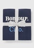 Learn moreThe Navy Gingham Pyjama Set offers a stylish blend of comfort and personality. The navy t-shirt features a fun "Bonjour, Hello, Ciao" graphic on the chest, adding a cheerful, multilingual touch. Paired with blue gingham-patterned bottoms.