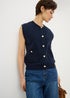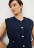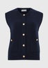 This Navy Gold Button Waistcoat offers a smart and polished layer that elevates both casual and tailored looks. Designed with a clean silhouette, it brings a refined finish while remaining comfortable to wear throughout the day. The gold button detailing adds a touch of elegance against the deep navy tone. Perfect for styling over shirts or pairing with matching separates.