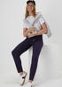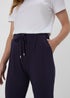 Learn moreSimple yet classic, these harem-style joggers perfect that smart/casual blend. In navy blue hue and made with sumptuously soft viscose, they come with two working side pockets and a stretchy waistband, together with a drawstring cord tie for an adjustable fit. Perfect for teaming with a vest top and trainers. Pair the harem trousers with a simple white tee, denim jacket, and sneakers for a relaxed yet stylish look or elevate your evening look by tucking in a silky blouse, adding statement jewellery, and slipping into heels for a sophisticated night out.