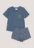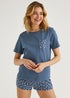 Learn moreThis 100% cotton pyjama set is perfect for those nights where the temperature rises. In navy and providing soft, breathable comfort, the short-sleeved top comes with a chest pocket and is beautifully complemented by the matching pair of elasticated shorts, as both feature multicoloured heart prints to really sweeten up the set. Model Height: 5ft 9.