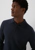 Elevate your wardrobe with our Navy Knitted Polo Shirt, a timeless blend of classic style and modern sophistication. Crafted from a premium cotton blend, this polo offers exceptional comfort and breathability, perfect for any season. Featuring a finely knitted texture, adding a touch of elegance to a traditional polo. Featuring a classic polo collar with a three-button placket for a customisable fit. For a casual yet polished look, pair it with our chino trousers and loafers or elevate your off-duty style by layering it under a blazer and completing the ensemble with jeans and sneakers.