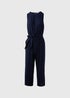 Learn moreThe Navy Linen Blend Jumpsuit is a chic and effortless addition to your wardrobe. Crafted from a lightweight linen blend, this sleeveless jumpsuit offers breathability and comfort for warmer days. The tie waist belt cinches the waist for a flattering, customizable fit, while the relaxed silhouette adds a touch of laid-back elegance. Perfect for both casual outings and evening events.