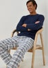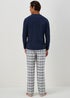 Embrace the cosy warmth of the navy long sleeve shirt, perfectly complemented by the stylish white check pants. This set effortlessly combines comfort and sophistication, ensuring a restful night's sleep in utmost style.