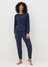 Learn moreThese navy lounge bottoms are the epitome of comfort and style. Crafted from luxuriously soft knit fabric, they feel like a gentle caress against your skin. The relaxed fit ensures utmost comfort, allowing you to unwind and embrace those lazy days at home. Featuring an elasticate waist and cuffed legs.